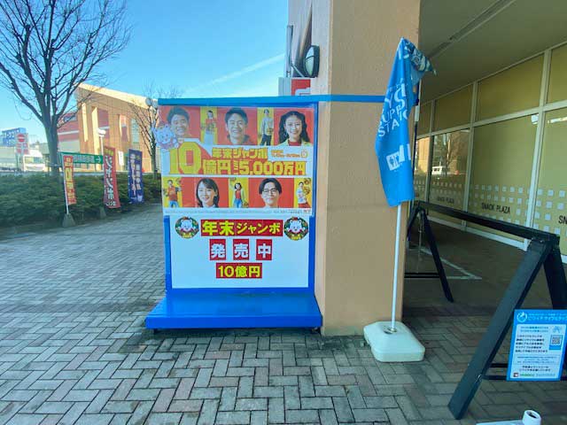 到着です!売り場は結構目立つので普通に発見できます。タイミング的に年末ジャンボの購入で結構並んでいる方も多かったです。