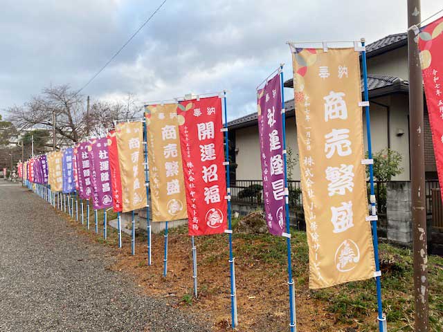 他にも商売繁盛や社運、開運などののぼりがズラリと並んでいます。