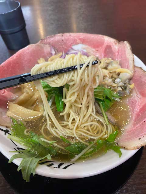 食べてみるととても美味しい!あっさりとしつつも濃厚な貝の出汁、さらりと喉ごしの良い麺。あさりのむき身も美味しい!なんだか看板との良い意味でのギャップがあります!