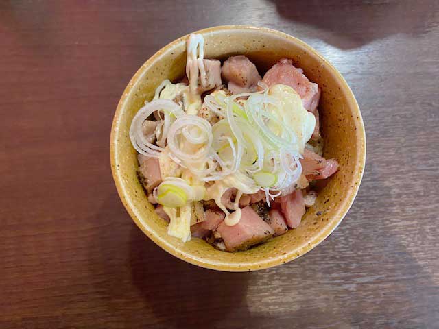 ビジュアルはコロコロチャーシューとマヨネーズとネギのこれまた黄金の組み合わせ!