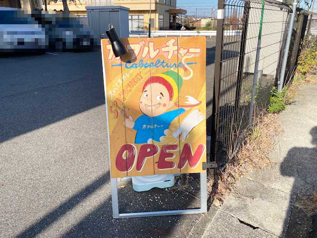 コチラが看板です。道路からだと少しお店自体が見えづらくて、通りすぎてしまうかもしれません。看板も含めて目印にしてもらうと良いと思います。