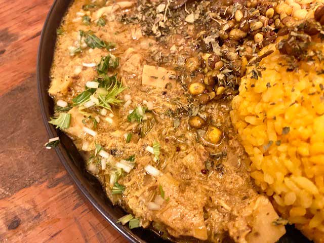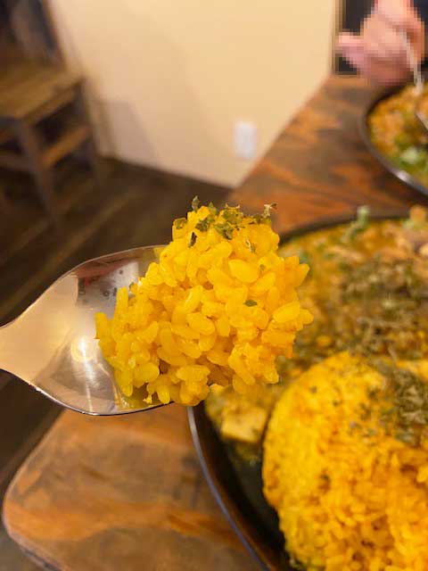 まずはごはんから。このご飯自体がシッカリと美味しい。ほのかに塩味があるバターライス(だと思う)はこれだけでも全然いけちゃいます。テイクアウトでこのご飯で作ったおにぎりがあったら私は2個くらいは買っている思う。それくらい好きです!