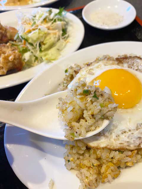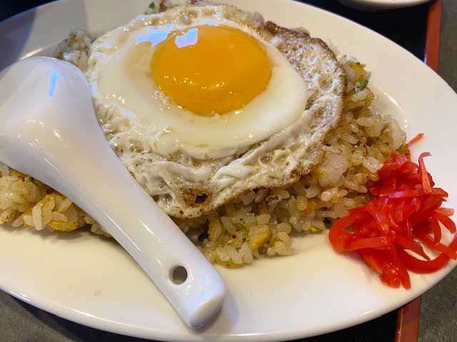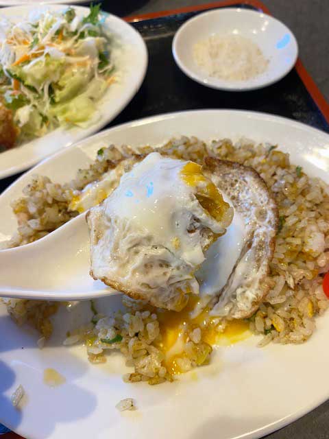目玉焼きがドーンと乗っているナシゴレンのような炒飯、こちらもボリュームたっぷりでパンチがありますね!
