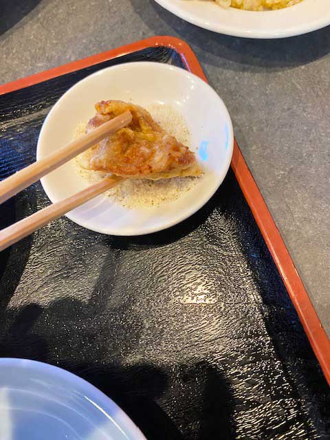 さらにマジックパウダーのような塩コショウ?を付けると更に美味しくなります。旨さのレベルが一気に上がります。クセになる美味しさですね。めちゃめちゃ美味しかったです!やはり私の中でココの推しは唐揚げと焼きそばですね!(焼きそばは今回食べていませんがリニューアル前で食べていますのでリニューアル前のブログをチェックしてみてください!)